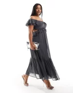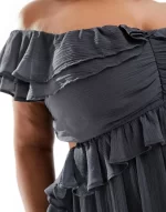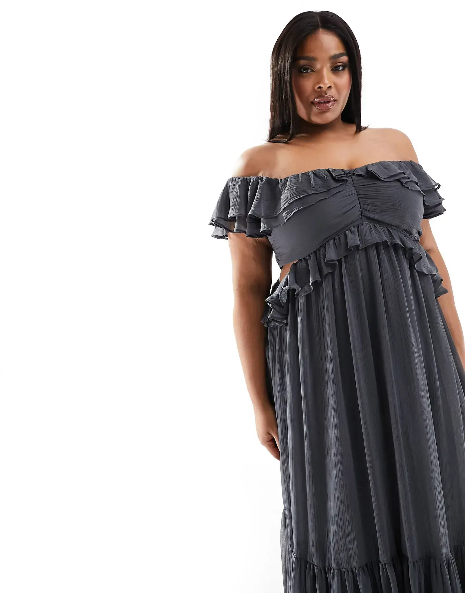 Curve ruffle cut out off the shoulder midi dress in charcoal
