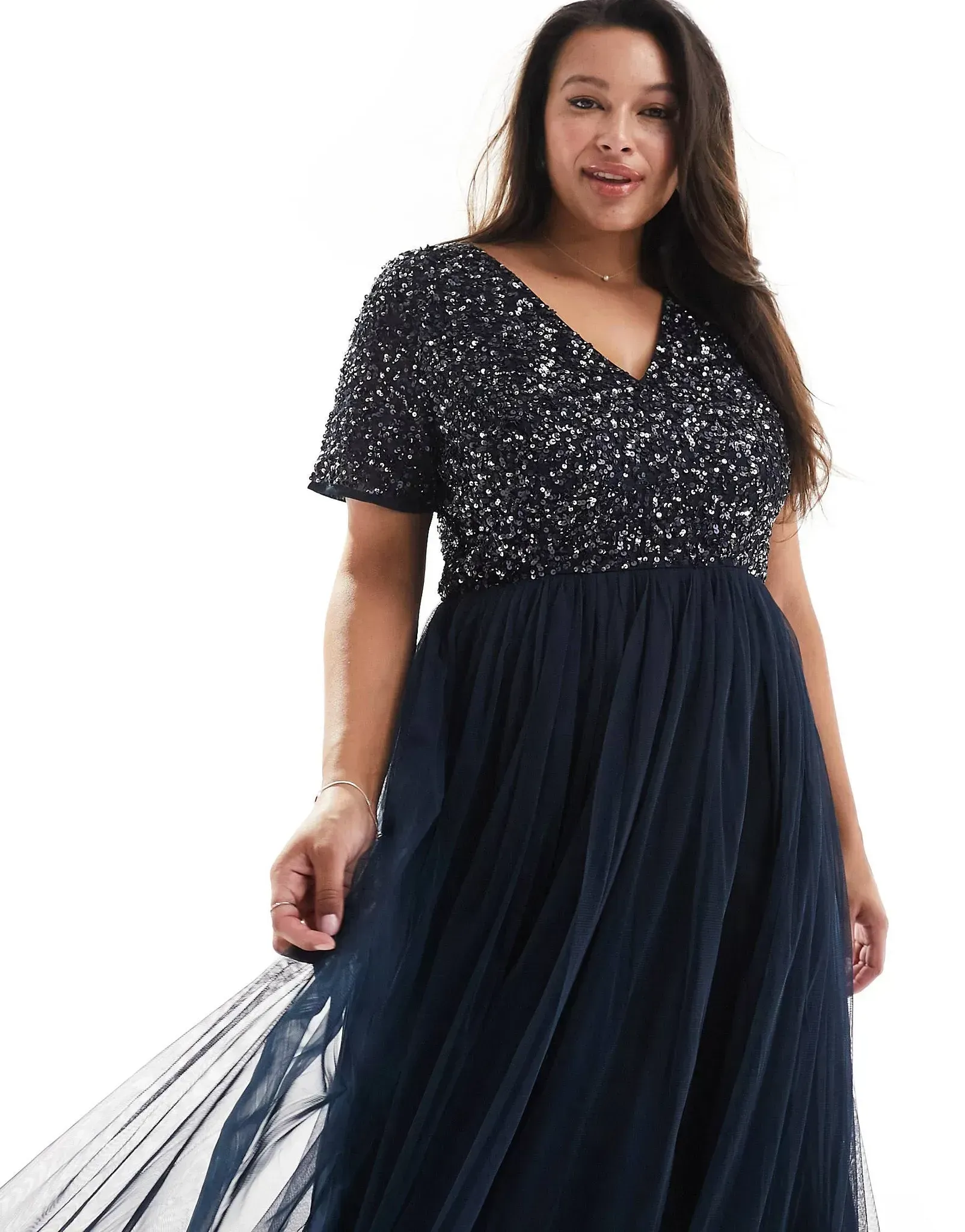 - Sequin-embellished bodice