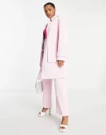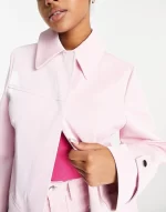 Miss Selfridge cargo pocket detail vinyl faux leather coat in pink co-ord
