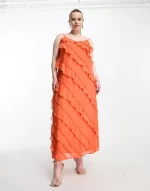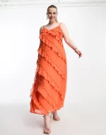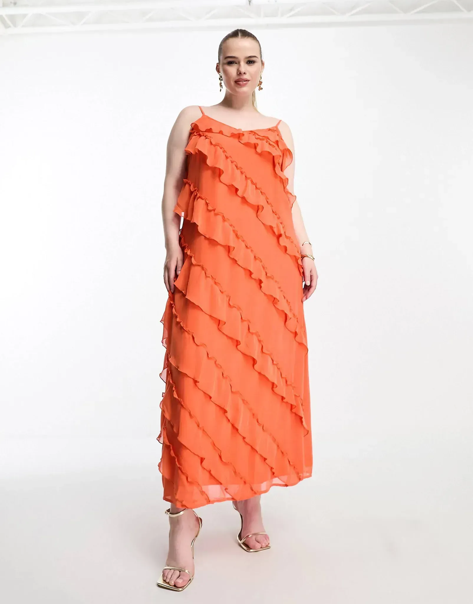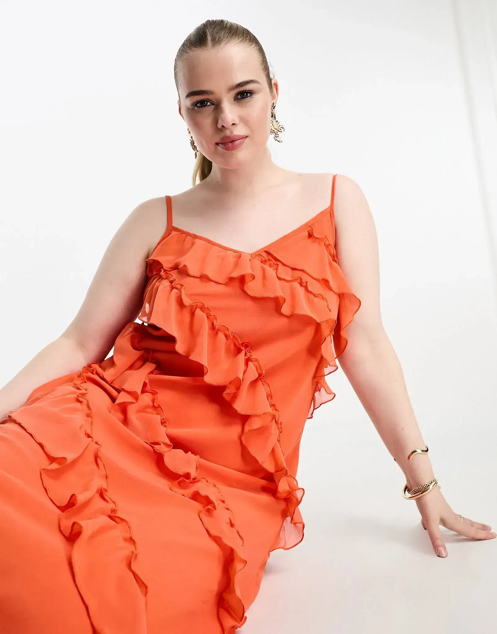 Be the first to review “Vila curve frill detail maxi cami dress in orange” Cancel reply